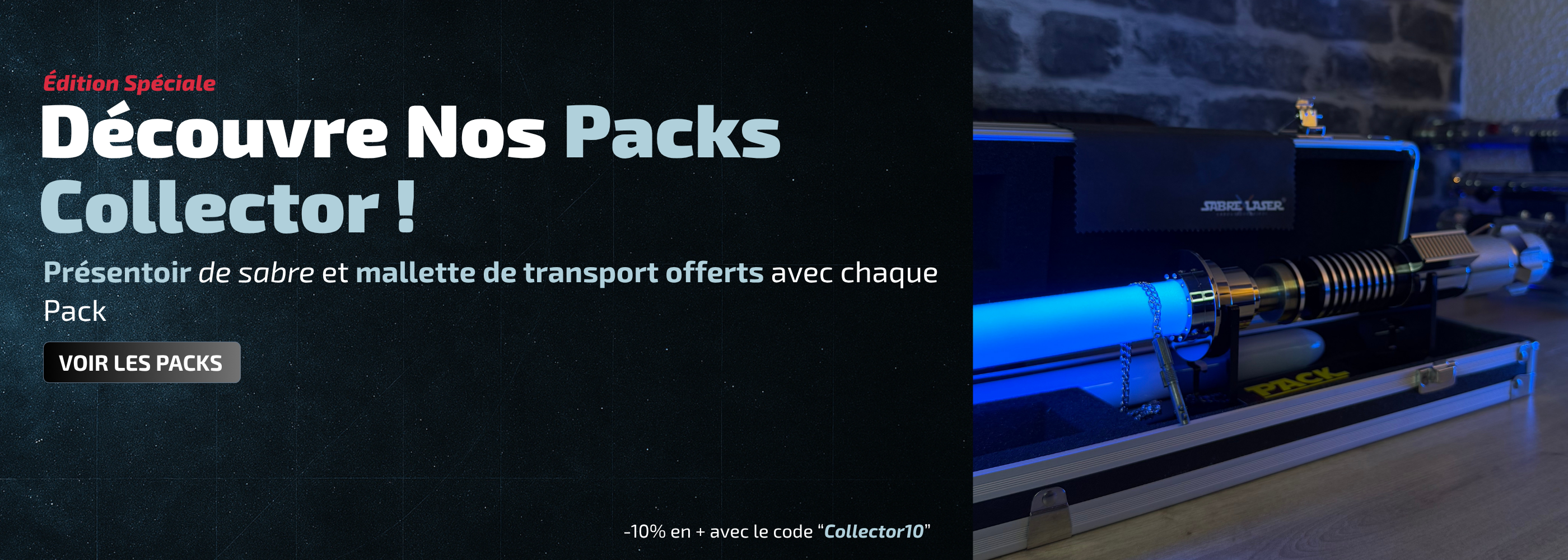Et les collectionneurs ? Ils trouveront leur bonheur parmi nos répliques fidèles, conçues pour de puissants combats. Plus question de perdre face à l'ennemi ! Si tu es du genre à préférer l'admiration à l'action, nos sabres laser sont également de magnifiques pièces à exposer dans ta base secrète.