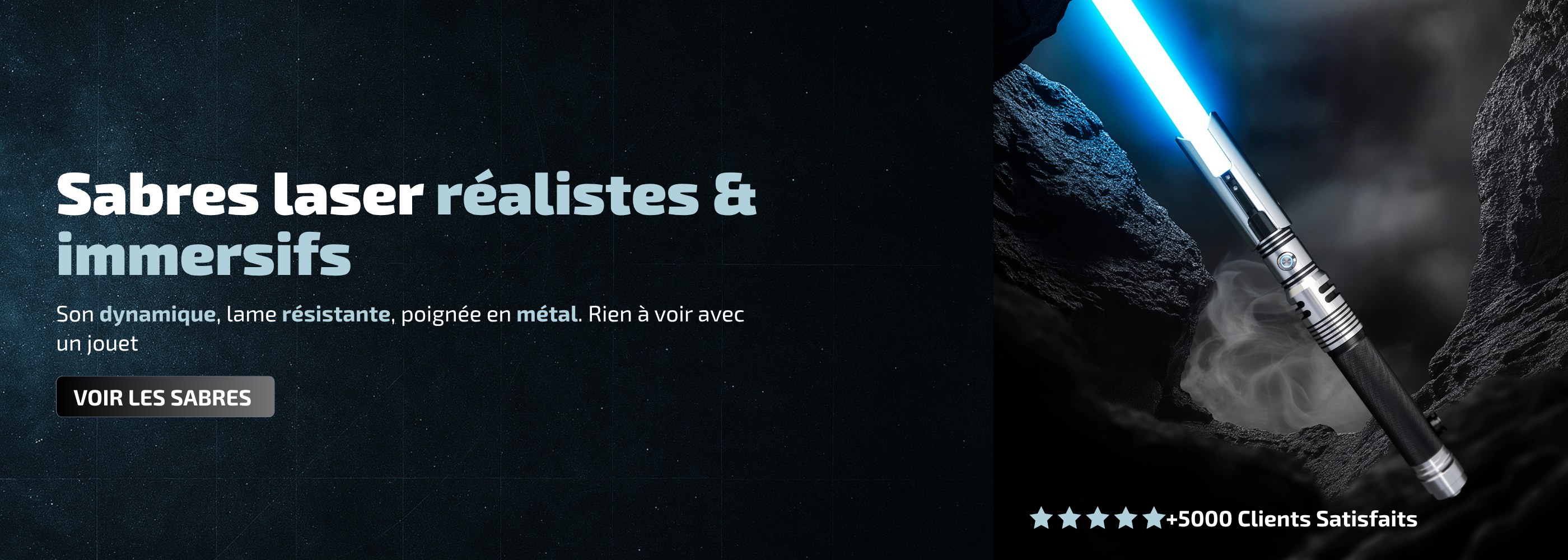 Et les collectionneurs ? Ils trouveront leur bonheur parmi nos répliques fidèles, conçues pour de puissants combats. Plus question de perdre face à l'ennemi ! Si tu es du genre à préférer l'admiration à l'action, nos sabres laser sont également de magnifiques pièces à exposer dans ta base secrète.